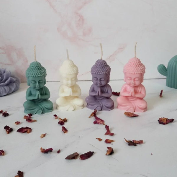 Siliconen kaarsenmal in de vorm van een boeddha.