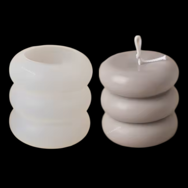 Siliconen kaarsenmal in de vorm van gestapelde kaaswielen.