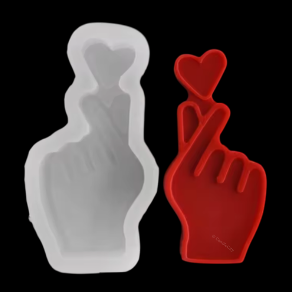 Siliconen kaarsenmal in de vorm van een liefde gebaar.