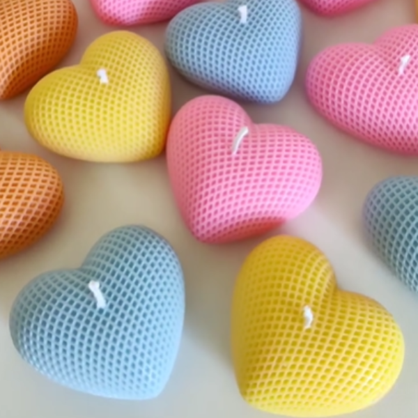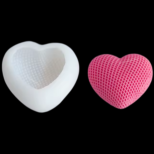 Siliconen kaarsenmal in de vorm van een hart met rasterprint.