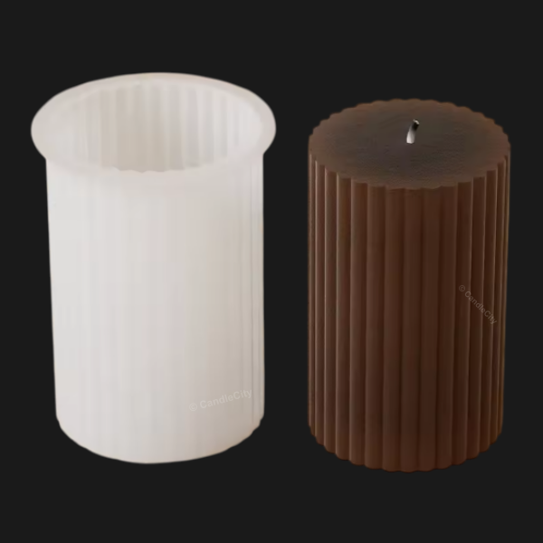 Siliconen kaarsenmal in een ronde vorm met lijnen.