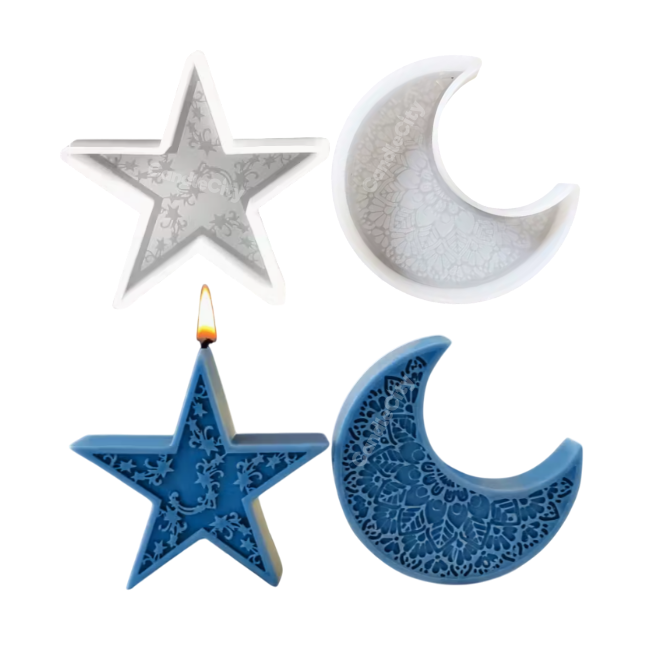 Siliconen mallen set – ster & maan voor unieke decoratieve kaarsen