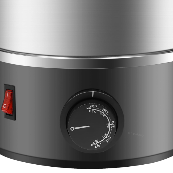 Met een royale inhoud van 8 liter is deze elektrische wassmelter perfect voor productie van meerdere kaarsen tegelijk of voor het werken met meerdere gietlagen. De nauwkeurige temperatuurregeling zorgt ervoor dat je de was altijd op de juiste temperatuur verwerkt, zonder risico op aanbranden of oververhitting.
